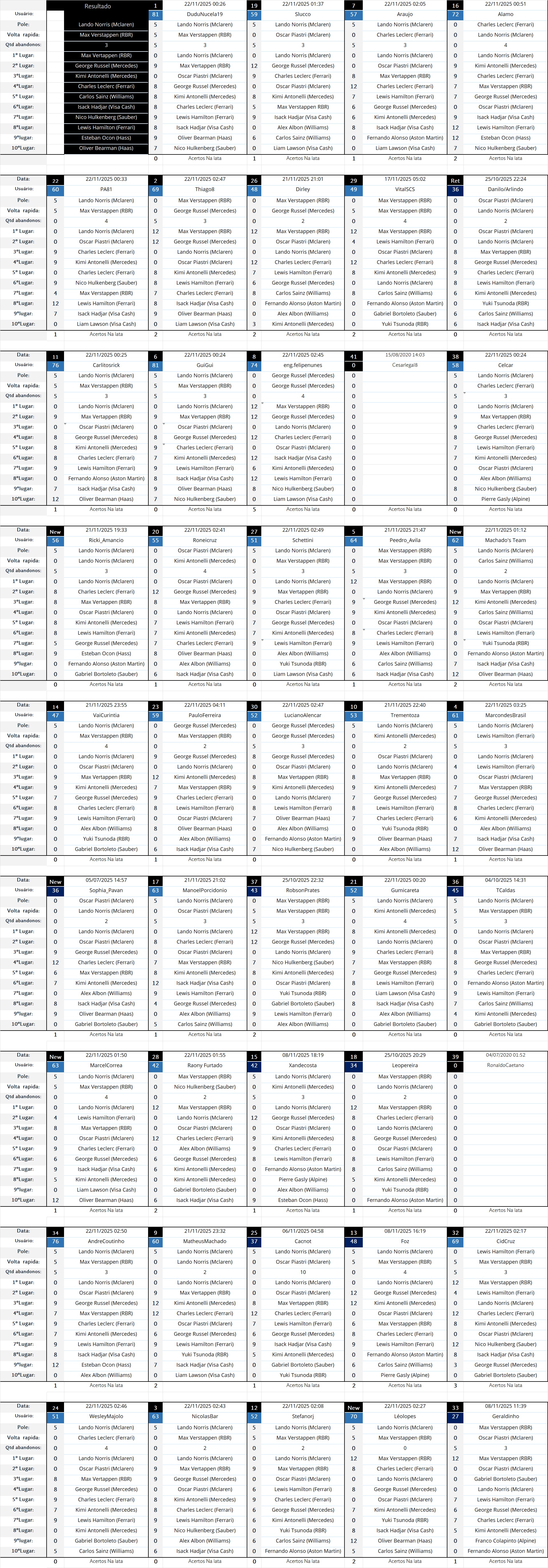 Palpites Abertos GP 21 Brasil até 08/11 11:30