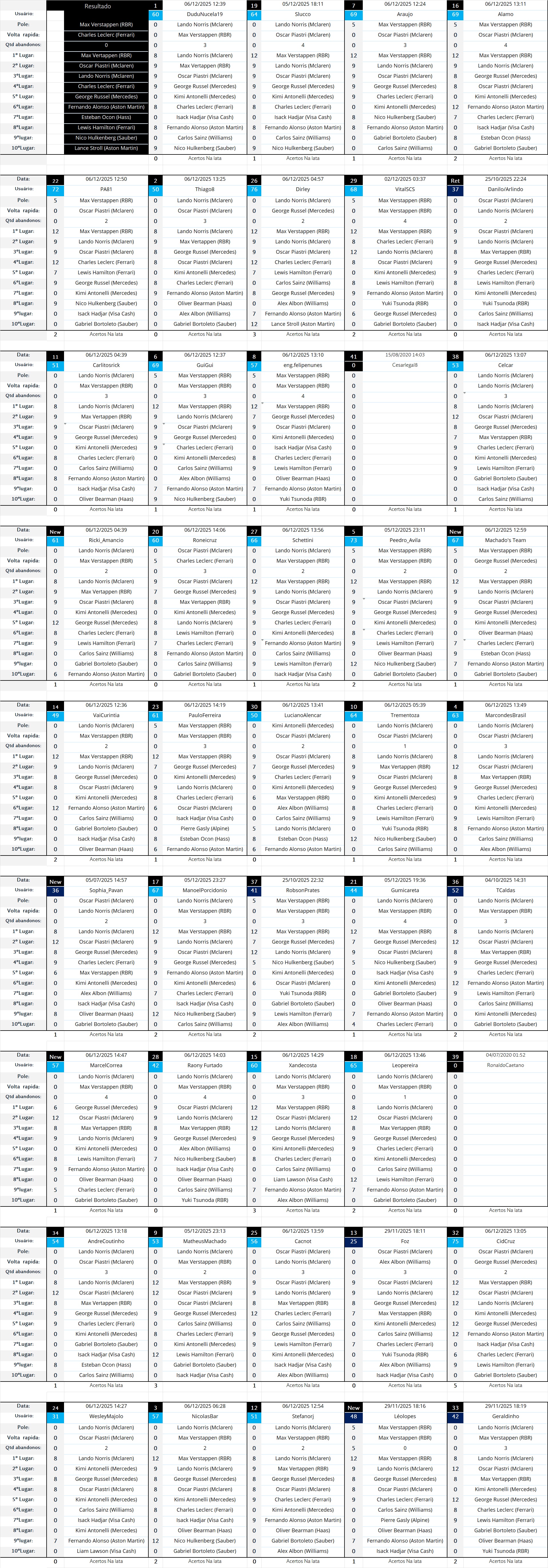 Palpites Abertos GP 24 Abu Dhabi até 06/12 10:30